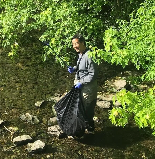 and if the water level permits, clean trash from the creek bed.